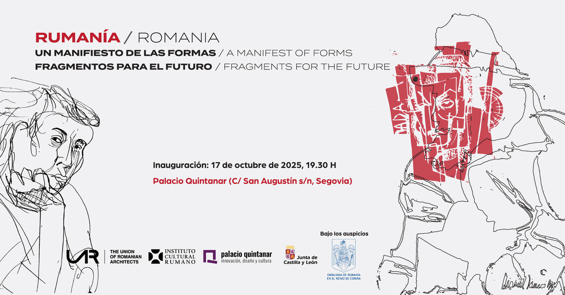 Pe 17 octombrie 2025, ora 19.30, la Palatul Quintanar – unul dintre cele mai importante ansambluri arhitecturale din Segovia – va fi inaugurată o amplă expoziție de arhitectură românească România. Manifest al formelor. Fragmente pentru viitor, curatoriată de Ileana Tureanu, președinta Uniunii Arhitecților din România. La eveniment vor fi prezenți: Giovanni Ferraro, directorul Palatului Quintanar, arhitecta Ioana Alexe, autoarea conceptului grafic expozițional, Andy Arif, jurnalist, editor, fotograf și videograf al revistei Arhitectura, și Maria Pop, directorul ICR Madrid. Invitat la vernisaj va fi reputatul prof. dr. arhitect Dorin Ștefan, membru corespondent al Academiei Române, autorul emblematicului Centru Constantin Brancuși din cadrul Muzeului de Arta din Craiova, căruia îi este dedicată o secțiune a expoziției. Expoziția, organizată de Uniunea Arhitecților din România, Institutul Cultural Român de la Madrid și Palatul Quintanar din Segovia, sub auspiciile Ambasadei României în Regatul Spaniei, este deschisă publicului până la sfârșitul lunii ianuarie 2026.